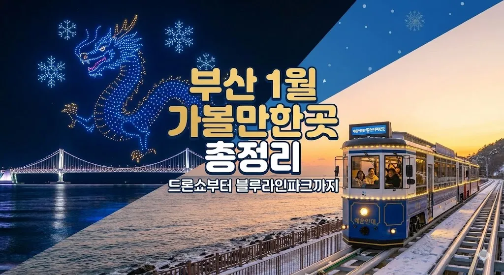 “이번 주말에 어디론가 훌쩍 떠나고 싶은데, 너무 춥지 않을까?” 겨울 여행을 계획할 때 누구나 한 번쯤 하는 고민이죠. 저도 지난 주말, 웅크려만 있기 싫어서 무작정 부산행 기차표를 끊었는데요. 결론부터 말씀드리면, 겨울 부산은 생각보다 훨씬 로맨틱하고 따뜻했답니다! 서울보다 포근한 공기, 밤바다를 수놓는 화려한 드론 쇼, 그리고 겨울에만 느낄 수 있는 특유의 낭만까지… 집에만 있었으면 정말 후회할 뻔했어요. 여러분도 이불 밖으로 나와 부산의 매력에 푹 빠져보시는 건 어떨까요? 제가 직접 다녀오고 엄선한 1월 부산 여행 꿀팁들을 지금부터 아낌없이 풀어드릴게요! 준비되셨나요? 출발~ 😊