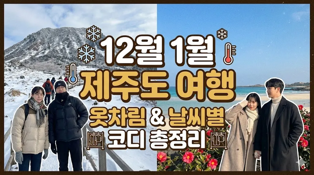 “제주도는 남쪽이니까 서울보다 따뜻하겠지?”라고 생각하고 가벼운 코트만 챙겨갔다가 매서운 바닷바람에 오들오들 떨었던 기억, 저만 있는 거 아니죠? 😅 겨울 제주는 기온 자체는 영하로 잘 떨어지지 않지만, 체감 온도를 확 낮추는 ‘칼바람’이 정말 매섭답니다. 하지만 동백꽃이 만개하고 눈 덮인 한라산이 기다리는 겨울 제주는 포기할 수 없는 매력이 있죠! 오늘은 따뜻함은 챙기면서 사진발까지 잘 받는 12월, 1월 제주도 여행 룩을 꼼꼼하게 알려드릴게요. 짐 싸기 전에 이 글 하나면 고민 끝! 😊