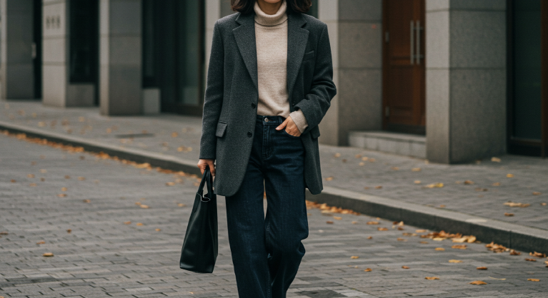 | A. 오피스 & 비즈니스 캐주얼 | 초가을 (9-10월) | 울 블레이저 + 실크 블라우스 + 와이드 레그 트라우저 | 톤온톤 매치로 세련미 극대화 |