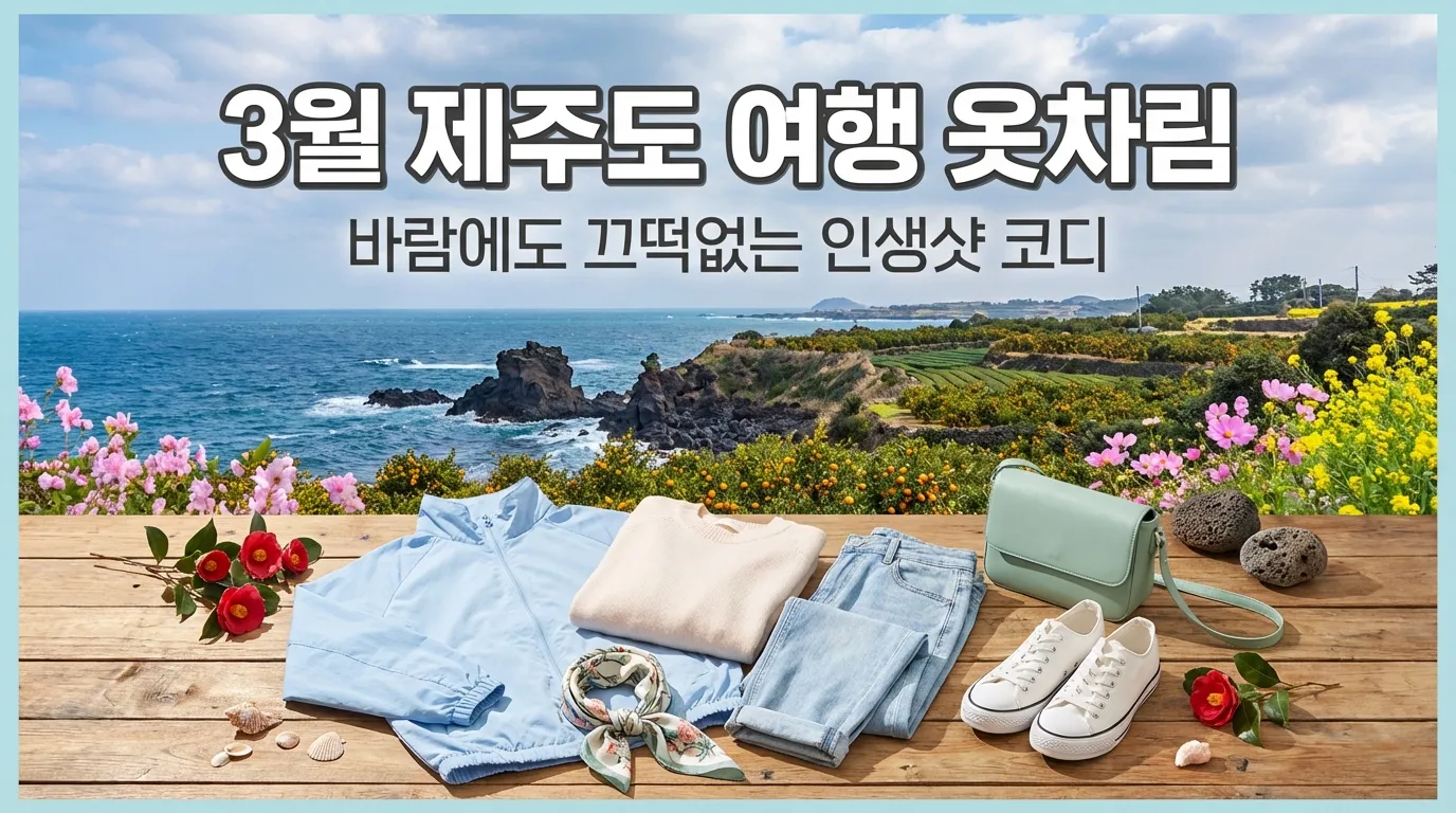 3월 제주행 티켓을 끊은 분들이 가장 많이 하는 고민이죠. 저도 스타일링 클래스나 화보 촬영으로 제주에 갈 때마다 짐 싸는 게 제일 일이에요. 막상 가보면 패딩은 사진에서 너무 둔해 보이고, 얇게 입자니 바람에 머리카락이랑 옷이 엉망진창이 되기 일쑤거든요. 😅