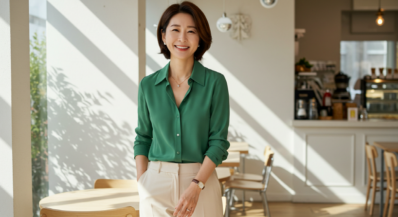 나이가 들수록 옷의 ‘소재’가 정말 중요해져요. 캐시미어, 실크, 린넨처럼 고급스럽고 몸에 닿는 감촉이 좋은 소재를 선택하면 별다른 액세서리 없이도 우아한 분위기를 연출할 수 있답니다.